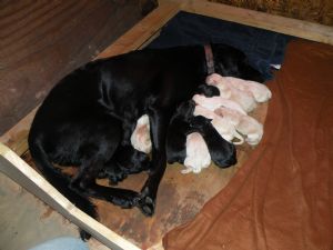 akc puppies,three yellow males,three black males,eight weeks old now.first shots and wormed,parents on site,sire is yellow and dam is choc.light cream…